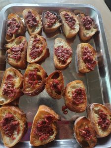 あとは、私が南イタリア旅行で買ってきたお土産の「ブルスケッタの素(イタリアの七味と言われています)」を使って、簡単ブルスケッタを作りました。