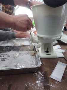 ついたお餅は、最新兵器を使って、あっという間に丸餅化!