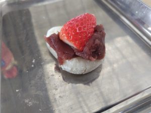 もちろん、イチゴ大福だけではなく、採れたての大根で大根おろしを作っておろし醤油で食べたり、お稲荷さんのお揚げの中に入れて食べたり、普通の醤油で食べたり、キナコで食べたり、醤油と海苔で食べたり・・・。