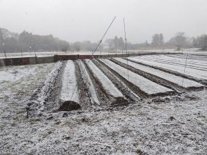 天気予報では、夜から雪だったのですが、どんどん予報が早まり、なんと、作業スタート時点で小雪がちらつき始めました。ヒェ~!!!